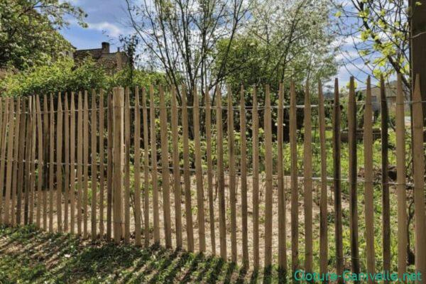 Les piquets sont réalisés en robinier-acacia scié et écorcé, une essence naturellement classe 4 reconnue pour sa longévité exceptionnelle. Capable de rester en contact avec le sol humide pendant plusieurs décennies, l’acacia offre une durée de vie supérieure à 30 ans sans entretien. Son cœur dense, l’absence d’échardes, sa forme à trois côtés et sa grande homogénéité en font un matériau de référence pour les clôtures extérieures hautes et durables.